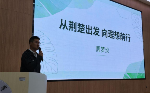 近日,食品与生物学院“荆楚大讲堂”暨优秀校友返校宣讲会成功举办。学院2014级园林技术专业优秀毕业生周梦炎、倪睿鑫应邀返校,以“从荆楚出发 向理想前行”为主题,联袂分享返乡创业历程与成长感悟,激励广大学子扎根专业、勇于实践、逐梦前行。