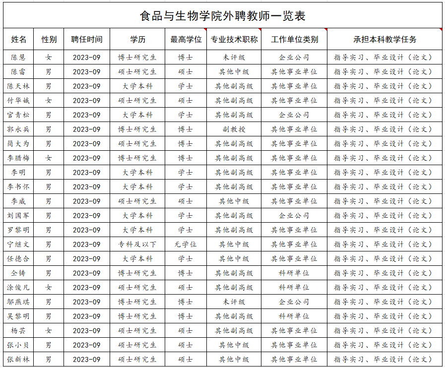 食品与生物学院外聘教师